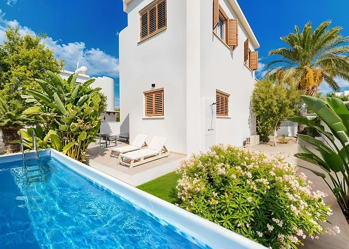 Dotata di un'area picnic, aree per barbecue e un giardino per un soggiorno piacevole, la Villa Athinas Protaras si trova a soli 6 minuti a piedi da Agios Elias. Situata a una distanza di 6 km dal Monastero di Ayia Napa, questa villa vanta una terrazza con vista sulla piscina.